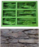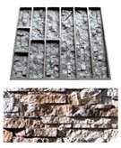 Утес Площадь формы: 0,3 м2 Количество изделий: 10шт. min - 20 x 100 x 20мм, max - 400 x 280 x 35 мм. Количество текстурных вариантов: Искуственный камень |